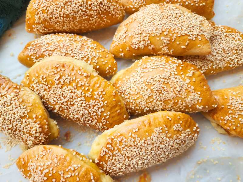 כיסוני בצק רכים וזהובים במילוי גבינה עיראקית מסורתית
