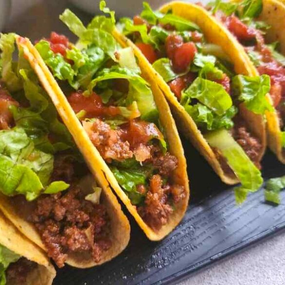 טאקוס קשיחים קריספיים ממולאים בתערובת טעימה ופיקנטית של בשר טחון מתובל יחד עם תוספות של עגבניות קצוצות, חסה, רוטב סלסה, וגוואקמולי טעים במיוחד!