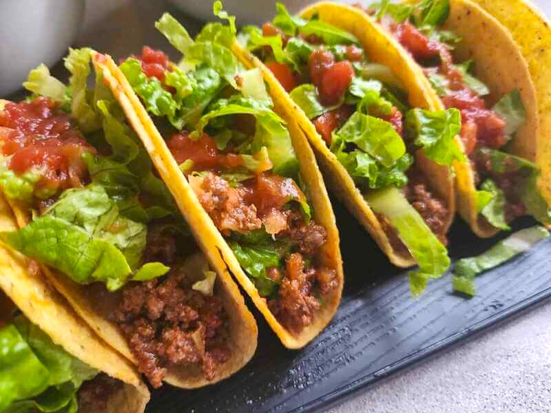 טאקוס קשיחים קריספיים ממולאים בתערובת טעימה ופיקנטית של בשר טחון מתובל יחד עם תוספות של עגבניות קצוצות, חסה, רוטב סלסה, וגוואקמולי טעים במיוחד!
