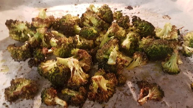 פרחי ברוקולי בתיבול עדין אפויים בתנור